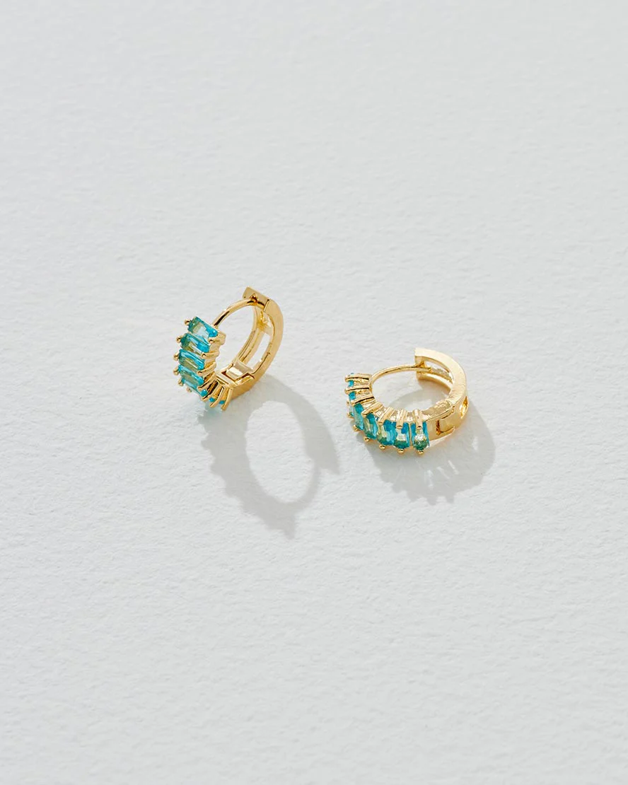 Covered in semi-precious gemstones, the Birthstone hoops are a miniature golden style with a personal touch.