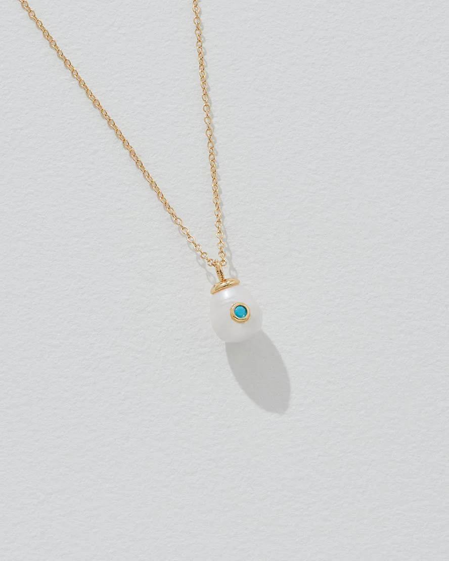 The Birthstone Pearl Pendant Necklace features a central crystal on a beautifully irregular pearl charm.