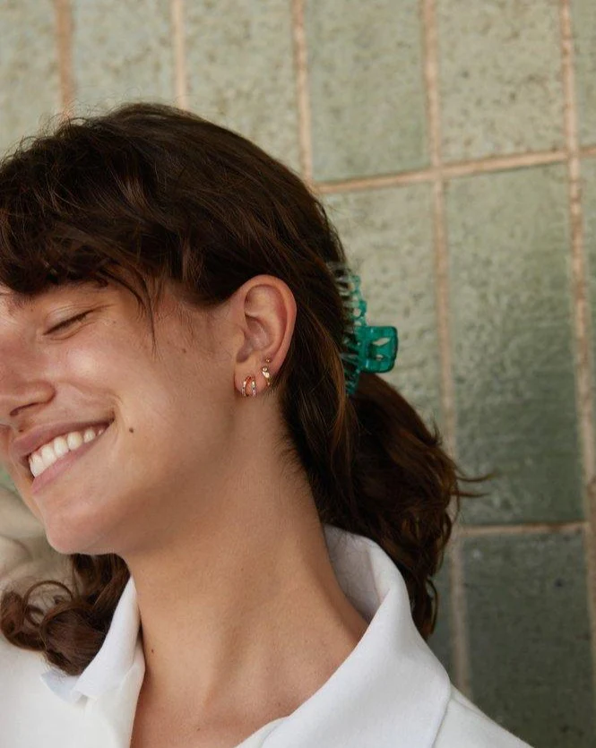 In a bright acrylic aqua, the Callie is an oversized lobster clip to hold your hair with flair.