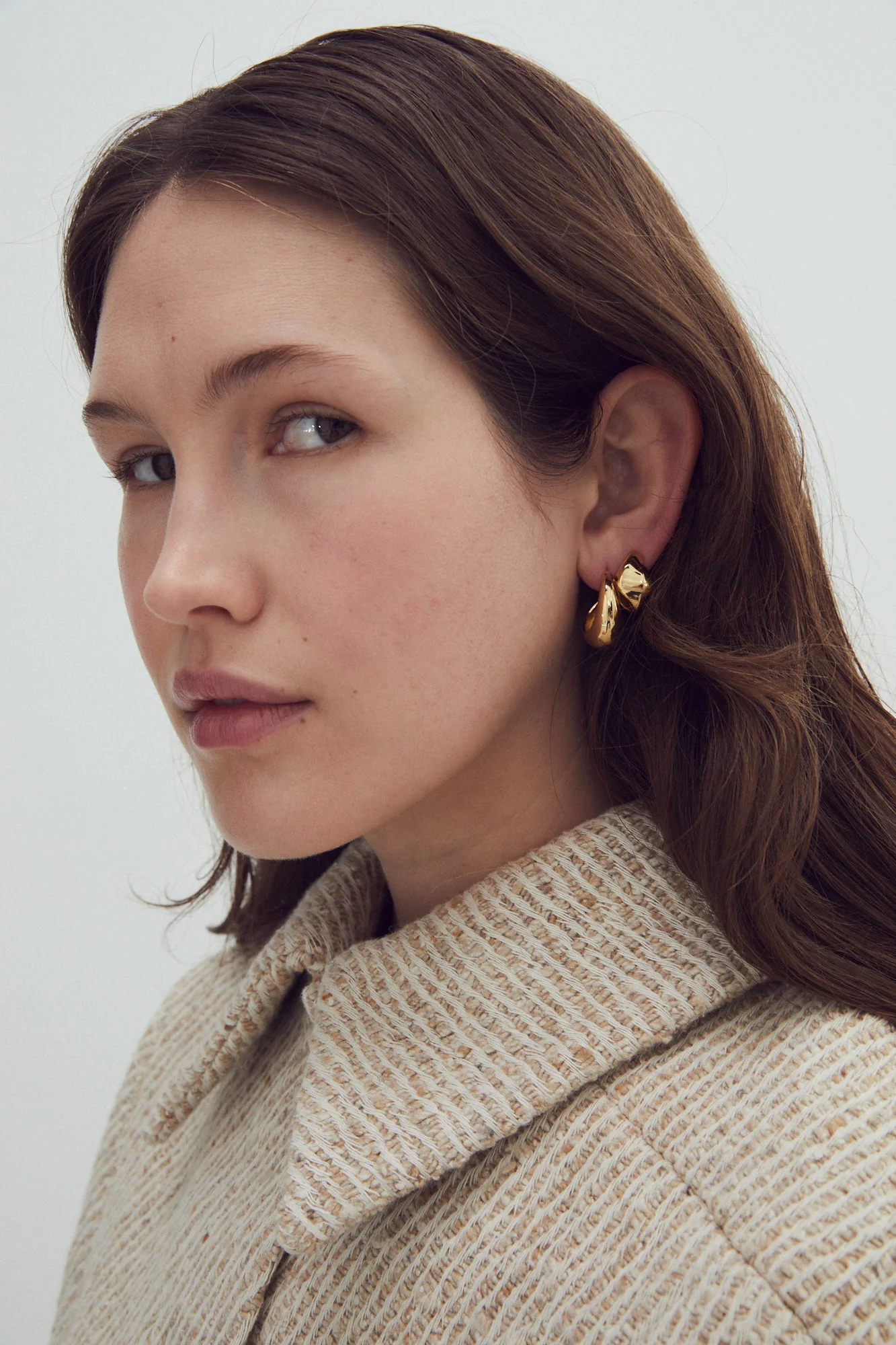 Step into a world of elegance with the Olivia Earrings - where boldness blends with sophistication in utter harmony. These chunky yet lavish hoops feature a mesmerizing graduated curve, their exaggerated form adding an irresistible touch of opulence to this classic meets contemporary style.