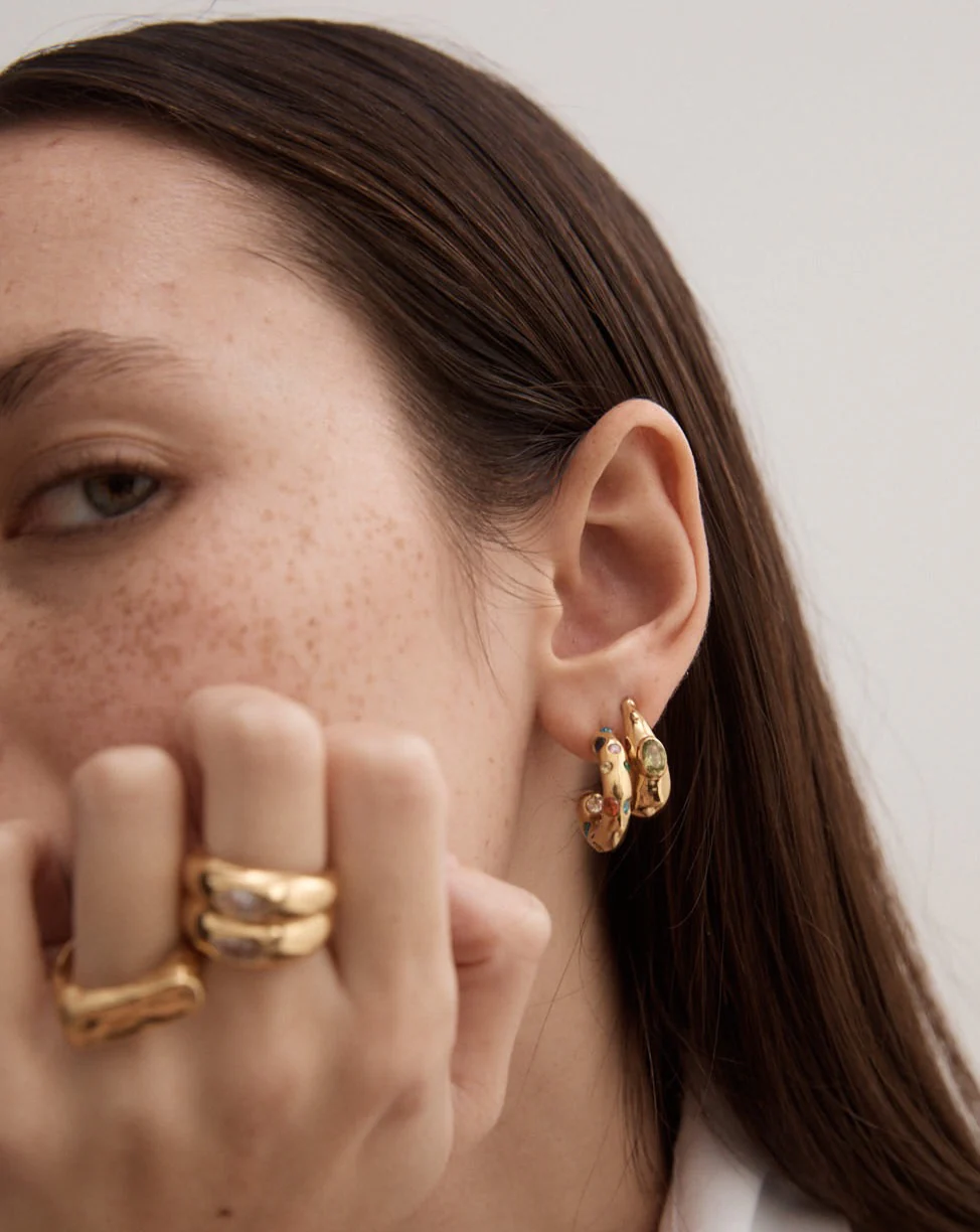 The festive treat our ears deserve, the Salvatore Earrings feature multi-coloured crystal gemstones dotted along its curved hoop. Varied sizes and shades of red, green, blue and black add instant colour to the minimalist wardrobe or prompt an all-out party for the bold-inclined. Designed for occasions special and mundane, the style lifts and works when effort is lacking. Features a post back.